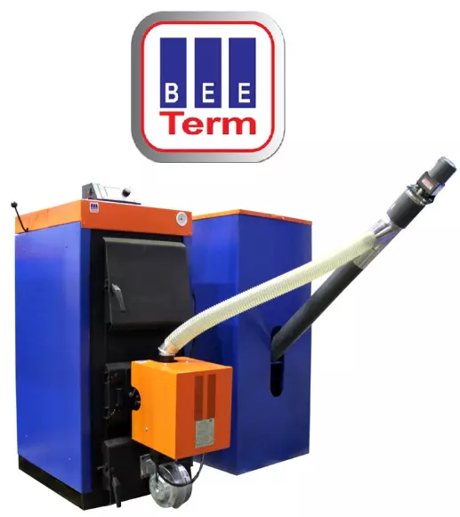 Котел BeeTerm сконструирован таким образом, чтобы он стал для украинского потребителя максимально универсальным при использовании твердого топлива. Котел, с помощью пеллетной горелки, может сжигать пеллету любого качества. Наличие авторозжига, автоматической очистки, и довольно объемного бункера для пеллет на несколько суток, делает эксплуатацию котла очень комфортным и удобным. Также, котел из пеллетного легко может переоборудоваться под обычный дровяной или угольный котел. Трехходовая жаротрубная конструкция котла обеспечивает дополнительную длительность горения твердого топлива. Конструкция котла позволяет также сжигать дрова и уголь.